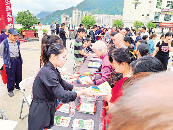 紫阳县应急管理局5月11日牵头组织县自然资源局、县住建局、县水利局等单位在紫阳广场联合开展防灾减灾主题宣传活动。张立喻 摄