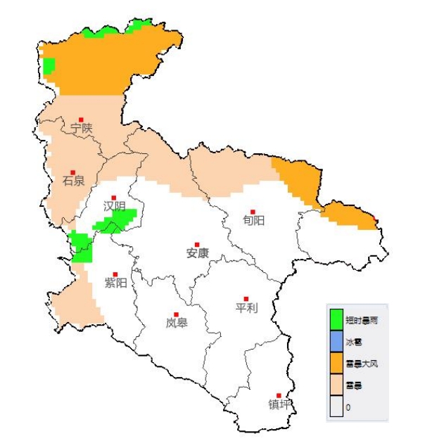5月25日14 时-26日08时安康市灾害性天气预报落区图