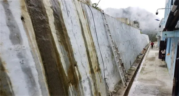 紫阳县洞河镇云峰村小米溪沟滑坡治理后修筑的挡墙。吴远顺 摄
