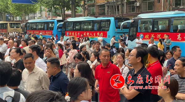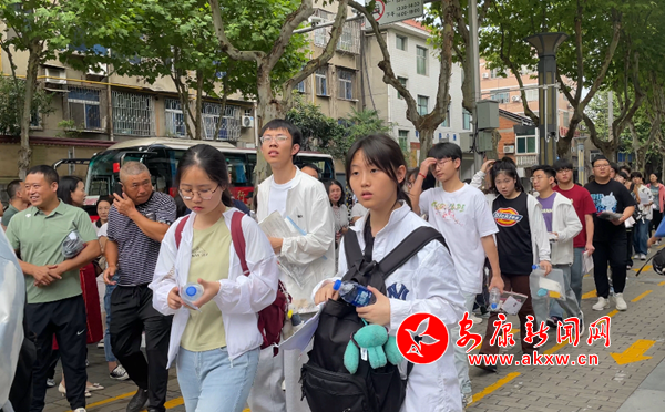 7日上午,考生们排队有序进入考场。公安干警、消防人员、社区志愿者等各部门工作人员在城区各考场为考生保驾护航。家长、老师们也在考场外为学子们加油打气。7pa安康新闻网