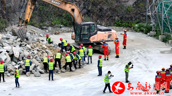 启动仪式上,汉阴县介绍安全宣传及应急演练情况,市安委办对全市安全生产月活动再安排再部署。随后,开展了非煤矿山事故应急演练。演练模拟持续强降雨天气下,汉阴西铁义德石料有限公司厂区出现边坡坍塌导致人员、设备被掩埋险情,市、县、镇、企业四级应急救援队伍紧急出动,展开联合抢险救援。演练过程中,各小组紧密配合,顺利完成了应急响应、警戒疏散、交通管制、信息上报、企业自救、伤员救治、雷达生命探测仪救援、无人机运输物资等演练科目,模拟险情得到及时消除。本次演练场景逼真,贴近实战,实现了锻炼队伍、磨合机制,强化应急处置能力的目标,无人机、生命探测仪等新技术装备的运用,有效提升矿山应急救援能力。