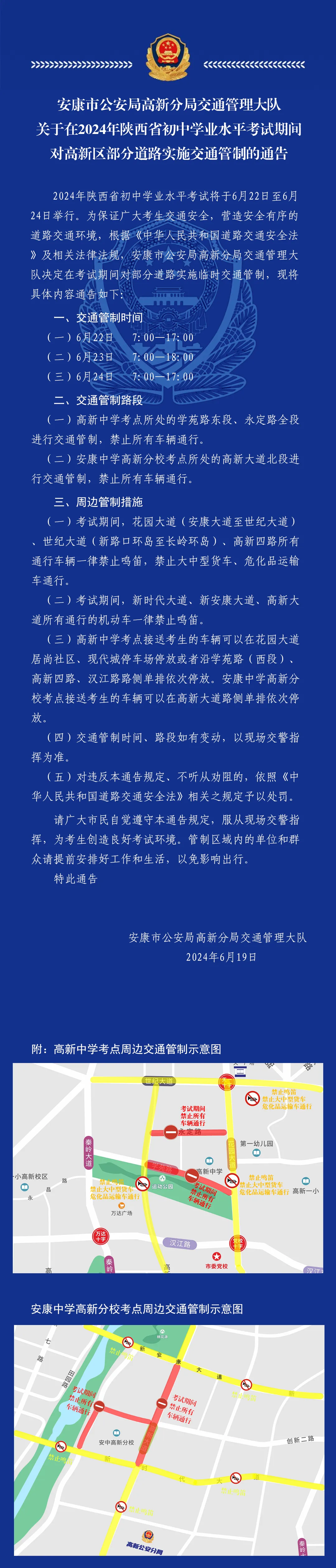 2024年陕西省初中学业水平考试期间 安康高新区部分道路实施交通管制