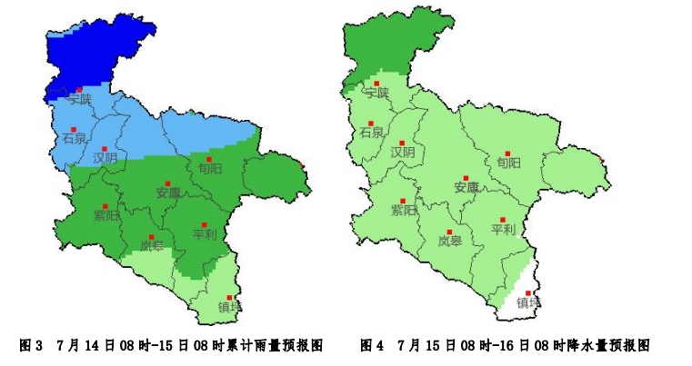14日:白天南部小到中雨转阴天,宁陕、石泉、汉阴、汉滨北部中到大雨,局地暴雨,夜间南部阴天,北部阴天有小雨或阵雨;