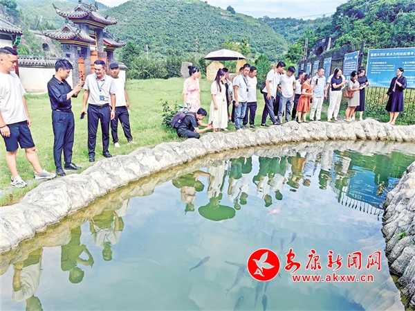 当天下午,安康市新媒体联合会带领主播们走进安康龙王泉富硒矿泉水有限公司,实地参观龙王泉富硒矿泉水的深层取水井、先进生产加工车间和公司依托当地山水美景打造的景区,感受企业文化。主播把学到的理论运用到实践之中,不停拿起手机进行拍摄,制作视频、上网发布、密集宣传。