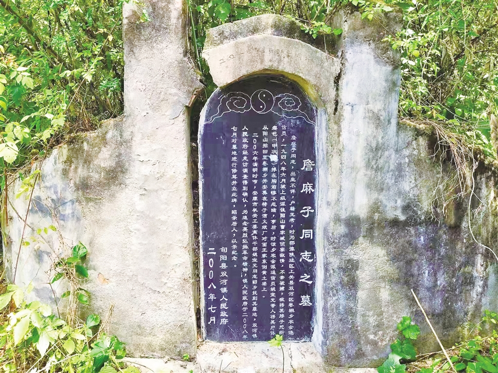 在旬阳市双河镇卷棚村老火纸场,一个小地名叫做椅子湾的对面黄土梁上,安葬着一位当地村民口口相传,传了一辈又一辈,每一辈人都只知道这座无名烈士墓的墓主人,外号叫“詹麻子”,至于他是哪里人,生于何时,牺牲时多大,有无兄弟姐妹与妻儿等,现如今仍无人知晓。
