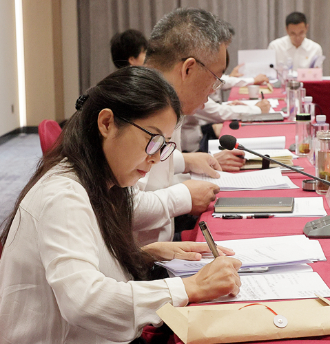 在市委五届七次全会小组会议上,与会人员认真记录。 记者 潘润生 摄