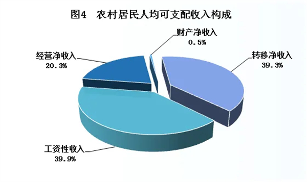 全市农村居民人均可支配收入14403元,比上年增加1035元,增长7.7%。其中,工资性收入5742元,增长7.9%,占可支配收入的比重为39.9%;经营净收入2928元,增长6.7%,占比20.3%;财产净收入68元,增长9.9%,占比0.5%;转移净收入5664元,增长8.1%,占比39.3%。