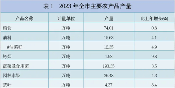 2023年,全市农林牧渔业增加值增长3.9%。其中,农业增加值增长4.2%;林业增加值增长2.4%;牧业增加值增长2.2%;渔业增加值增长8.3%;农林牧渔专业及辅助性活动增加值增长6.4%。