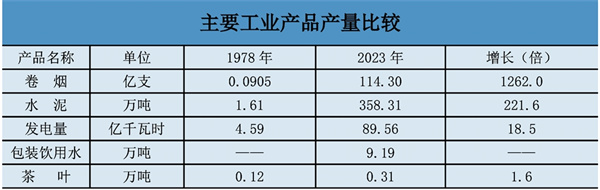 主要产品增长迅猛。75年来,全市工业生产能力大幅提升,特别是近年来,安康市积极抢抓共建“一带一路”重大机遇,统筹布局预制菜全产业链建设,预制菜加速“出圈”,石泉县荣登“2023预制菜产业基地百强”榜单。毛绒玩具产业“从无到有、从有到优”迅速成长为新兴支柱产业,恒口示范区创建毛玩工业旅游基地,2023年安康荣获“中国毛绒玩具产业新都”称号;全市特色产业体系日益完善,富硒产品、生态旅游、新型材料三大千亿级产业集群正快速推进。工业新产品不断涌现,卷烟、水泥、发电量、包装饮用水和茶叶等特色产品迅猛增长。2023年全市卷烟114.30亿支,水泥358.31万吨,发电量89.56亿千瓦时,包装饮用水9.19万吨,茶叶0.31万吨。