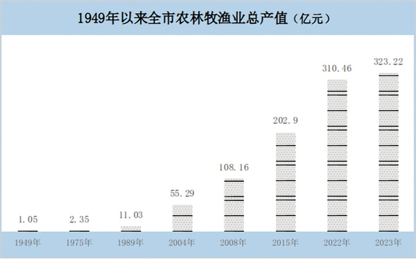 农民生活日益丰裕。新中国成立以来,全市不断加大农村水、电、路建设的投入力度,加快农村文化、教育、医疗等基本公共服务设施建设,“千村万户”工程进农村,79.9万建档立卡贫困人口全部脱贫,992个贫困村全部出列,10个贫困县区全部摘帽,如期实现全域脱贫,乡村振兴战略成效明显。农村居民人均可支配收入大幅增加,从1978年的161元增加到2023年的14403元,增长近90倍,年均增长10.5%,2023年增长7.7%,高于城镇居民人均可支配收入2.5个百分点。城乡收入差距持续缩小,由2002年的3.74︰1缩小至2023年2.34︰1,共同富裕的幸福安康进一步迈进。