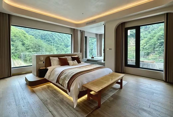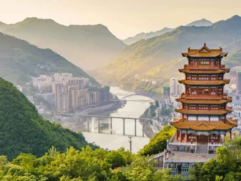 或是打卡南江湖景区中的巴山硒院,背后是秋意渐浓的山野,眼前是现代的建筑物,繁花里纵览繁华。
