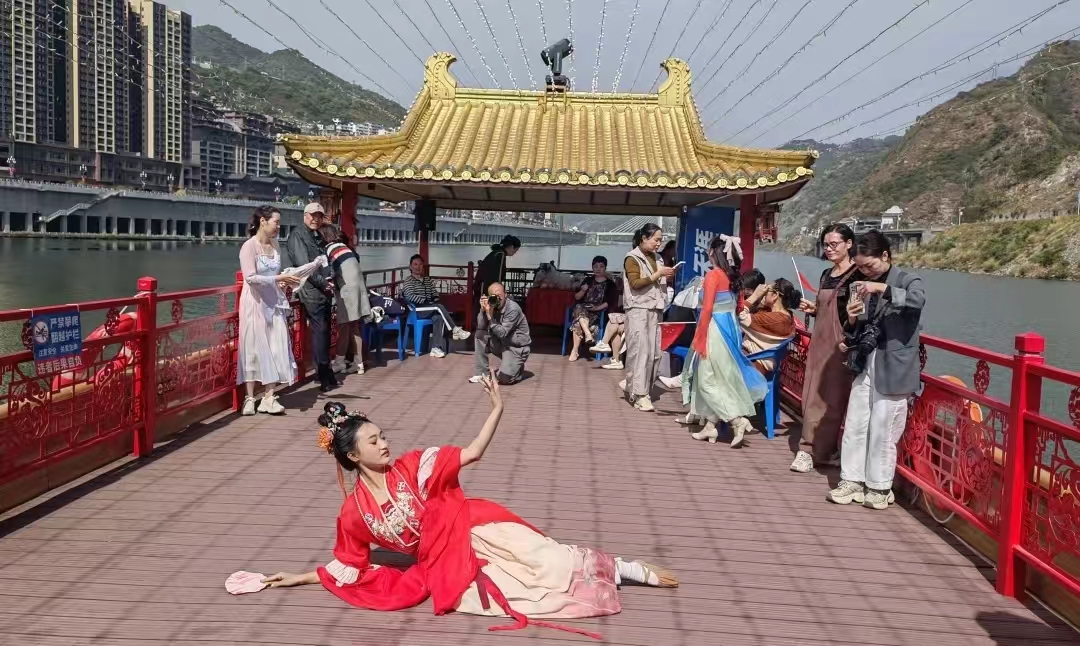汉江画廊游船:在汉江画廊游船上,舞蹈《黄梅有忧》、健身操《中国喜事》、拉丁舞、龙船调、古典独舞等沉浸式演出活动轮番上场,现场一片掌声、欢呼声和叫好声,瞬间点燃了旅客的热情。