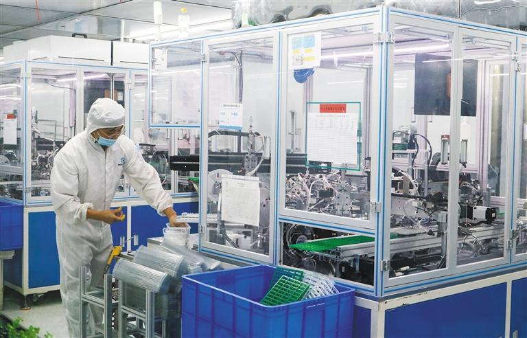 10月12日,在轩意光电生产车间,智能安防、5G通信光学器件等多条生产线开足马力,产线整体自动化率超过90%。