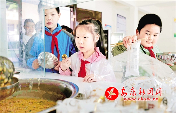 2024年,学生在新建的餐厅排队吃早餐。