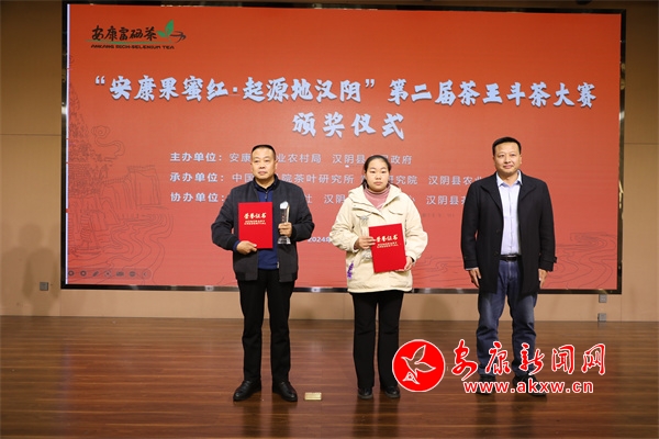 比赛现场,28份茶品参赛,经过评审团现场审评打分。最终汉阴县汉泰农业科技发展有限公司获得“茶王”称号,凤堰茶业有限公司获得一等奖,汉阳镇天源富硒茶叶专业合作社、平梁镇嘉木田源茶树良种专业合作社获得二等奖,漩涡镇杜家垭茶厂、臻品众康茶业有限公司、和嘉元茶业有限公司获得三等奖。“汉阴果蜜红是个新的产品,从开发到现在,我们做了很多的努力,市场反应都比较好,政府非常支持,作为茶企的一员,在今后的开发制作研发的过程当中,要付出更多的努力,争取把果蜜红做向全国,走向世界。”谈起获奖感受,茶王获得者冯卫平激动地说。