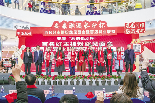 2024年12月21日,安康市在新媒体联合会在吾悦广场举办了“湘遇长沙杯”百名好主播粉丝见面会暨百店异业联盟交流活动,百店异业联盟实体店东七体检中心、贵州赤水河酒安康品鉴中心、百特瓷砖、小石头啵啵石锅鱼、艺多星艺术培训、奇瑞新能源安康琪媛4S店等商户共拿出百万余元优惠大礼包为消费者送福利。活动当日,主播们还将百店异业联盟平台的粉丝卡送给粉丝朋友们,持有粉丝卡到联盟平台的商家消费,均可享有不同程度的优惠。“百名好主播宣传推介提高百店联盟知名度,百店联盟为百姓送福利,‘三百’携手,激发了市场活力,这个活动办得真好!”现场领到粉丝卡的陈静华女士说。