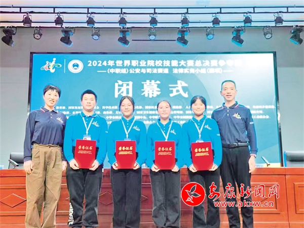 2024年10月24日,2024年世界职业院校技能大赛总决赛争夺赛在山东济南落下帷幕,来自全国中职学校四个平行组42支代表队参加法律实务组角逐,汉阴县职教中心赖珍明、雷泽艳老师指导的学生汪慧明、罗兹芳、袁祖鹏、谢静静凭借扎实法律知识、专业技能和沉稳竞技心理素质,一路过关斩将,最终荣获该组金奖,实现了全市职业院校在世界级赛事夺金奖的历史性突破。