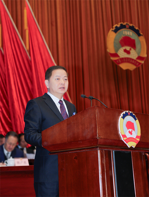 市政协主席周建功代表政协安康市第五届委员会常务委员会作工作报告。记者 陆青波 摄
