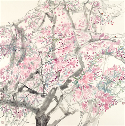 记者:您的花鸟画在传统基础上融入了许多现代元素,能否具体谈谈您是如何在继承传统与创新之间找到契合点的?在写意与写实、传统与现代、具象与抽象之间,您更倾向于追求哪一方面的表现?