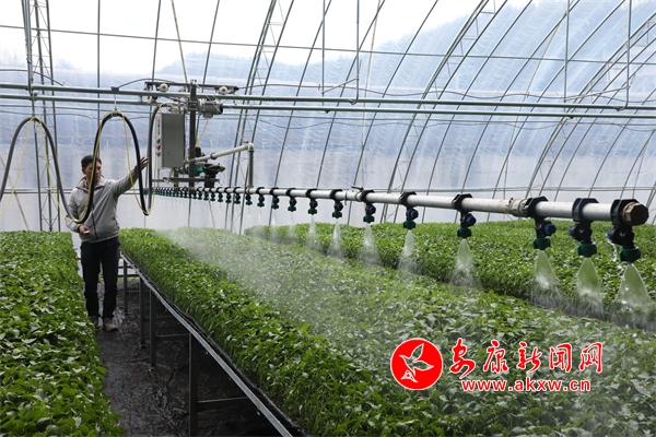 春日的安康市汉滨区建民街道天瑞塬生态园区生机盎然,智能温室中的自动喷淋浇灌、APP自动管护、机械化播种,充分展现现代农业科技魅力。郑时根 摄