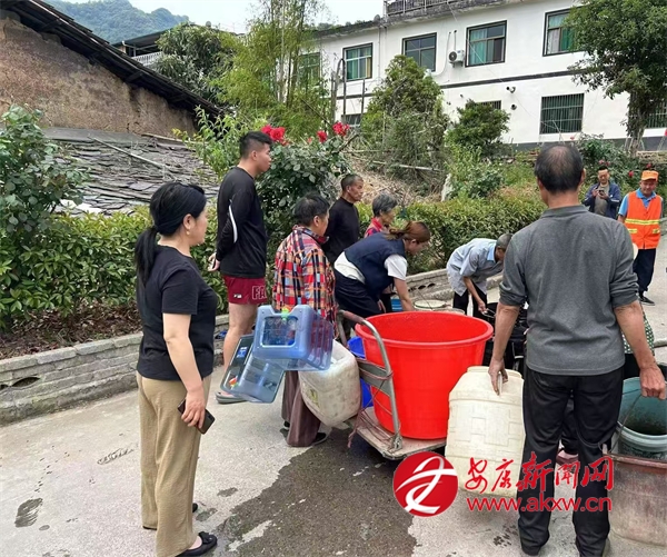 5月19日,平利县长安镇积极应对旱情,组织常安乡建公司开展送水入户行动,确保村民饮水安全。图为镇村干部顶着烈日挨家配送。胡铃铃 摄