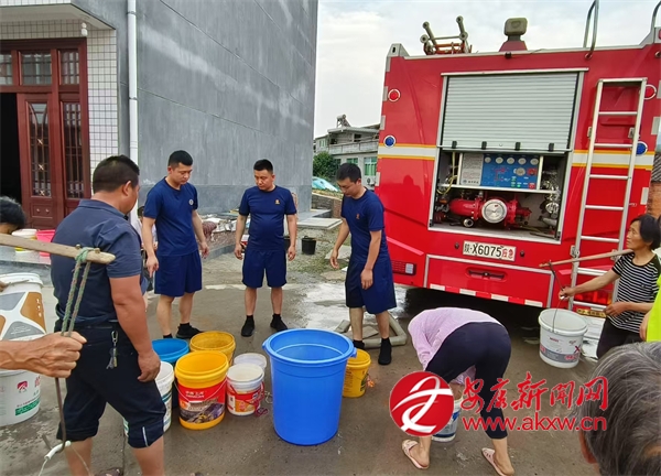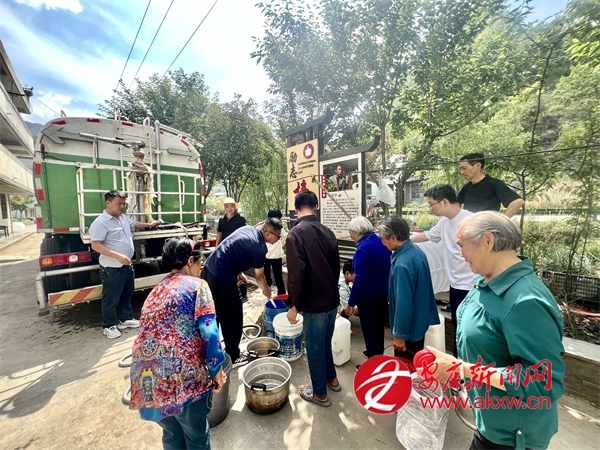 受高温干旱天气影响,汉阴县城关镇部分群众生产生活用水受到影响。5月22日,该镇协调洒水车、消防车,组织党员干部为群众送水。张辉 摄