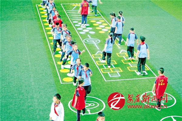 儿童节前夕,平利县城关小学在校园地面铺设创意彩绘,这份特殊的礼物让孩子们玩得不亦乐乎。 杜鹃 摄