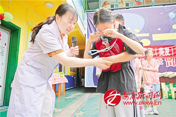 5月27日,儿童节前夕,安康职业技术学院护理学院师生走进岚皋县佐龙镇留守儿童关爱中心,开展心肺复苏与海姆立克急救法培训。 张智明 摄