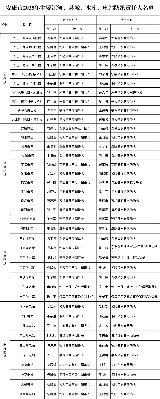 附件:安康市2025年主要江河、县城、水库、电站防汛责任人名单