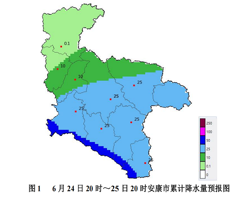 6月25日白天至夜间:西北部小到中雨(0~10毫米),中南部大雨(20~40毫米),南部巴山沿线局地暴雨(50毫米以上);