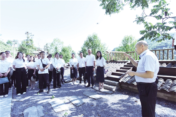 旬阳市第一小学党总支近日组织全体党员、入党积极分子及教共体成员校党组织书记、党务工作者,赴旬阳市棕溪镇王院村红色教育基地开展主题党日活动。图为王院村党支部书记陈分新为大家讲党课。 罗龙飞 郑倩 摄