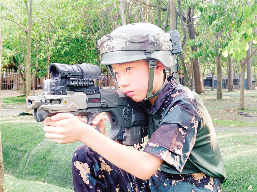 训练场上,30多位身姿挺拔的退伍军人担任教官。匕首操练习中,教官细致纠正每个握姿;擒敌拳的动作在口号声中虎虎生风;真人CS战区硝烟弥漫,孩子们分组“激战”,在掩体间穿梭配合;5公里拉练,小个子被大哥哥牵着,无人掉队;火箭筒体验区前,扣动扳机的瞬间,欢呼声直冲云霄。