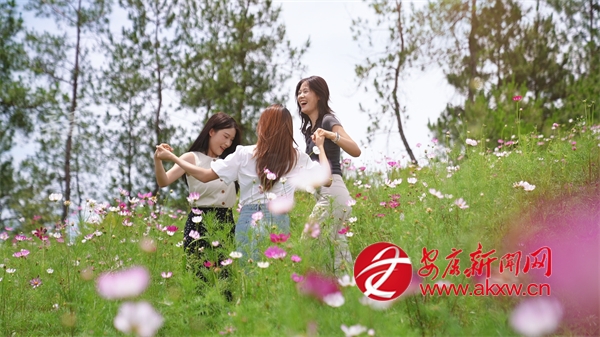 县河牛蹄岭的格桑花海吸引游客打卡拍照