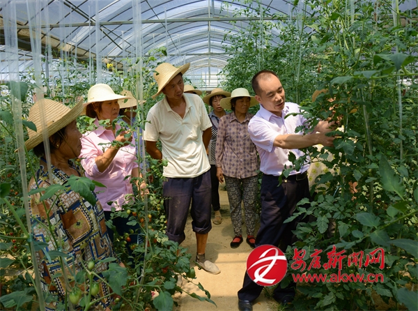 忠诚村党支部书记刘瑞红现场给村民讲解如何修剪圣女果