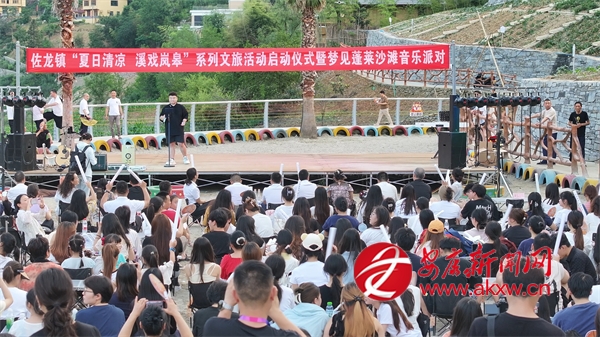 佐龙镇党委、政府因势利导,开发了蓬莱仙境景区及马宗村民宿集群,又把河湾变成了露天公共文化场所。他们举办的沙滩音乐节,邀请本地的音乐舞蹈爱好者驻场,鼓励当地群众、外来游客参与,以参与活动、宣传活动的数量打卡积分,兑换文创产品和文化礼品。