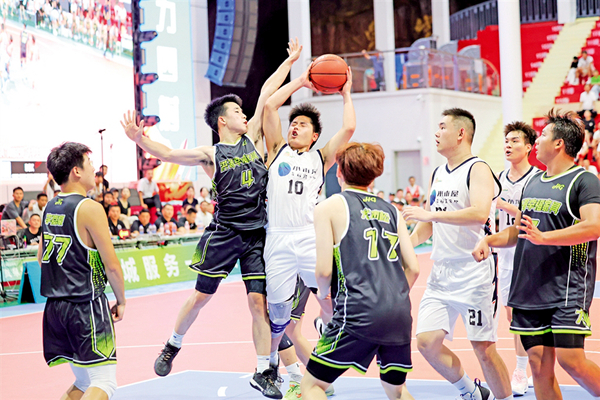 安康企协桃花源代表队在外籍球员CJ·特罗特和贾森·汉尼拔的带领下一度领先12分,南宫山代表队球员在主力队员梁欢、朱思禹先后受伤的不利局面下,由彭博带领球队艰难咬住比分。距离全场比赛结束9.8秒,南宫山代表队3号队员李子豪外线一记精准的3分把比分追至78平,这是两队比分首次打平。CJ·特罗特后场接球,直插篮下,转身后仰,将比分反超2分,留给南宫山队3.2秒。南宫山代表队4号球员彭博一记长传跨过半场,精准找到了6号球员韩邦,上篮,80分平,加时赛,球场响起山呼海啸的欢呼。加时赛中,南宫山代表队用一次次精准的投篮、拼尽全力的防守,最终以93:88的比分夺得冠军。