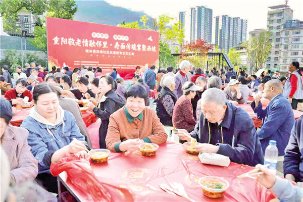 10月28日,岚皋县城关镇西坡社区举办了“重阳敬老情融邻里·寿面传暖宴聚西坡”主题活动。廖霖 摄