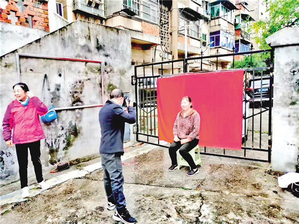 10月27日,汉滨区后张岭社区党委组织七十周岁以上的党员举办重阳节主题活动。图为现场给每个参加活动的党员摄影留念。王振华 摄