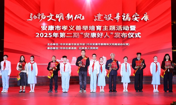 本次活动以“弘扬文明新风 建设幸福安康”为主题,由市委宣传部主办、石泉县委和县政府承办,旨在深入学习贯彻党的二十届四中全会精神,扎实推进崇德向上幸福安康建设。活动现场,通过播放典型人物短片、现场互动访谈等形式,生动再现了陈登发、高虎、黄寿琴等好人代表的感人事迹。市级领导及“中国好人”“陕西好人”等先进典型代表为28名新入选的“安康好人”颁发纪念证书。活动现场同时发布了2025年安康市“新时代好少年”名单,24名青少年获得殊荣。