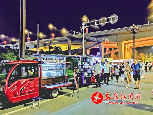 夕阳西下,夜幕降临。四桥(东坝汉江大桥)下陆续被摆摊小贩、货车司机以及各色敞着后备箱的汽车所填满。“泡面小姐姐”“荒野咖啡”“鲜花集市”……百米长的道……