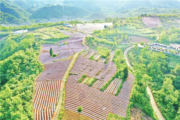 远眺,雾霭轻抱柔软的山脊;近瞧,齐腰的茶树苍翠欲滴。空山新雨,茶香醉人。在蒋家坪村女娲凤凰茶业现代示范园,长沙游客王晓原一路走一路拍照,“这是习近平总……
