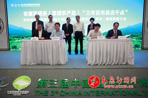 本网讯 (记者 陆青波 李俊)5月15日下午,借助第三届中国国际茶叶博览会平台,我市在杭州成功举办安康富硒茶(富硒农产品)“三年百市百店千点”华东地区送健康……