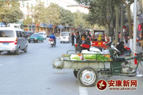 当街停放的水果车让这条本就繁忙的街道一下子拥挤不堪安康新网讯 记者 潘润生 文图:1月3日,市民叶师傅打进热线称,年关将近金桥路(中心医院后门至大桥路)的马……