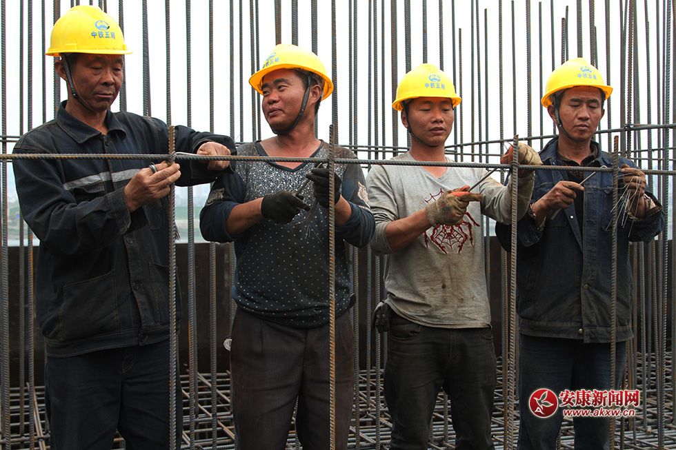吴立军(左二) 40岁 中铁五局路桥公司工人