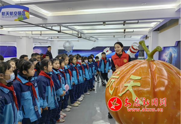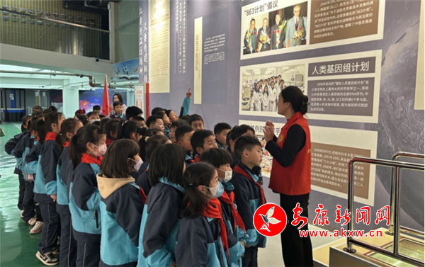 在讲解员的带领下,同学们有序进入一楼展厅,先后参观了机器人展区、健康生活展区、航空航天展区等。