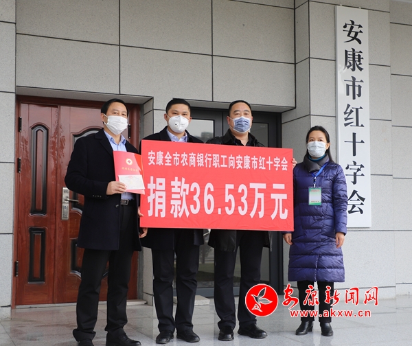 2月7日,安康审计中心代表全市农商银行职工向安康市红十字会捐款36.53万元,捐赠款项将全部用于支持安康市中心医院(安康市传染病院)等11家新型冠状病毒感染疫情定点收治医院,全力支持抗击新冠肺炎疫情。部分县级机构通过县红十字会、县慈善协会等渠道向疫情防控一线捐赠8.32万元。旬阳农商银行153名党员自愿向中共旬阳县委组织部缴纳特殊党费14.01万元,充分发挥了党员在抗击新冠肺炎疫情中的先锋模范作用。
