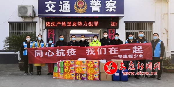 2月11日,安康援少会前往担负城区及城乡结合部防控任务的交警江南中队、张滩交警中队以及担负疫情救治任务的安康市中心医院、汉滨区第三人民医院四家单位,共捐赠近两万余元的防控用品和生活物资,其中医用酒精1600斤,84消毒液1100斤,护目镜45个和一次性手套650双,向奋战的抗疫一线的公安交警和医护人员舍小家为大家的无私奉献精神致以崇高的敬意。