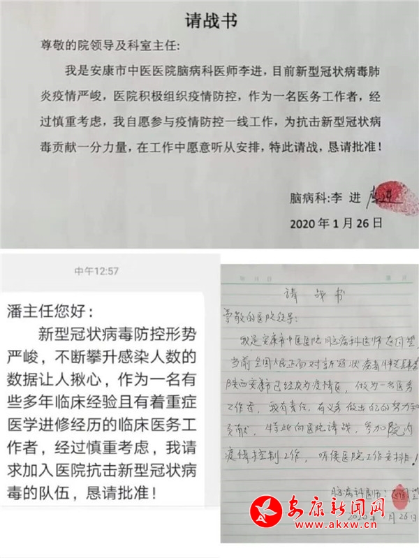 疫情发生以来,市中医院党委印发《关于加强党的领导坚决打赢疫情防控阻击战的通知》,广泛动员各党支部和党员干部积极投身到疫情防控和集中救治第一线,亮身份、做表率、树形象,在院党委的号召下,儿科党支部提出在疫情防控阻击战中开展“六带头”活动(带头冲锋防控一线、带头学习防控知识、带头落实防控措施、带头严守工作纪律、带头做好思想工作、带头做好舆论引导),医技第二、内科第一、外科第一等党支部的200余名党员,1000余名职工积极参与到疫情防控工作当中,一条条、一封封微言大义的请战书,是中医院医务人员向疫情宣战的决心,也是医院全体职工抗击疫情的忠诚与执着。