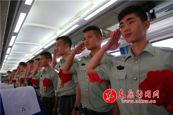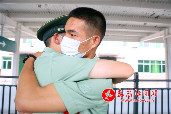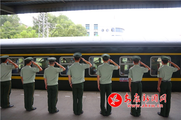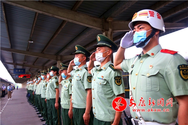 一双双紧握的手、一个个深情的拥抱、一对对浸透泪水的眼睛和最后一次的敬礼,无一不诉说着战友之间无限的眷恋。伴随着汽笛声响起,火车缓缓前进,退伍老兵们带着支队领导的嘱托和战友的祝福,挥泪告别,送行官兵列队敬礼,向老兵们表达最后的敬意。