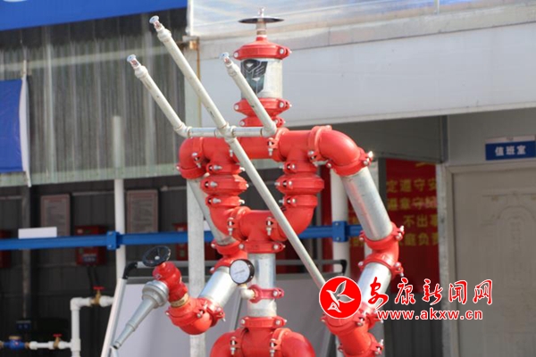孙虎军还介绍说,镀锌钢管做成的机器人有一个很实用的功能,就是还可以放在工地上当作喷淋机器使用。“我们在机器人手中拿的三叉戟顶端装了喷淋头,接通水以后就可以喷淋,可以起到抑尘作用,到了夏天也能喷水降温。”孙虎军介绍说。